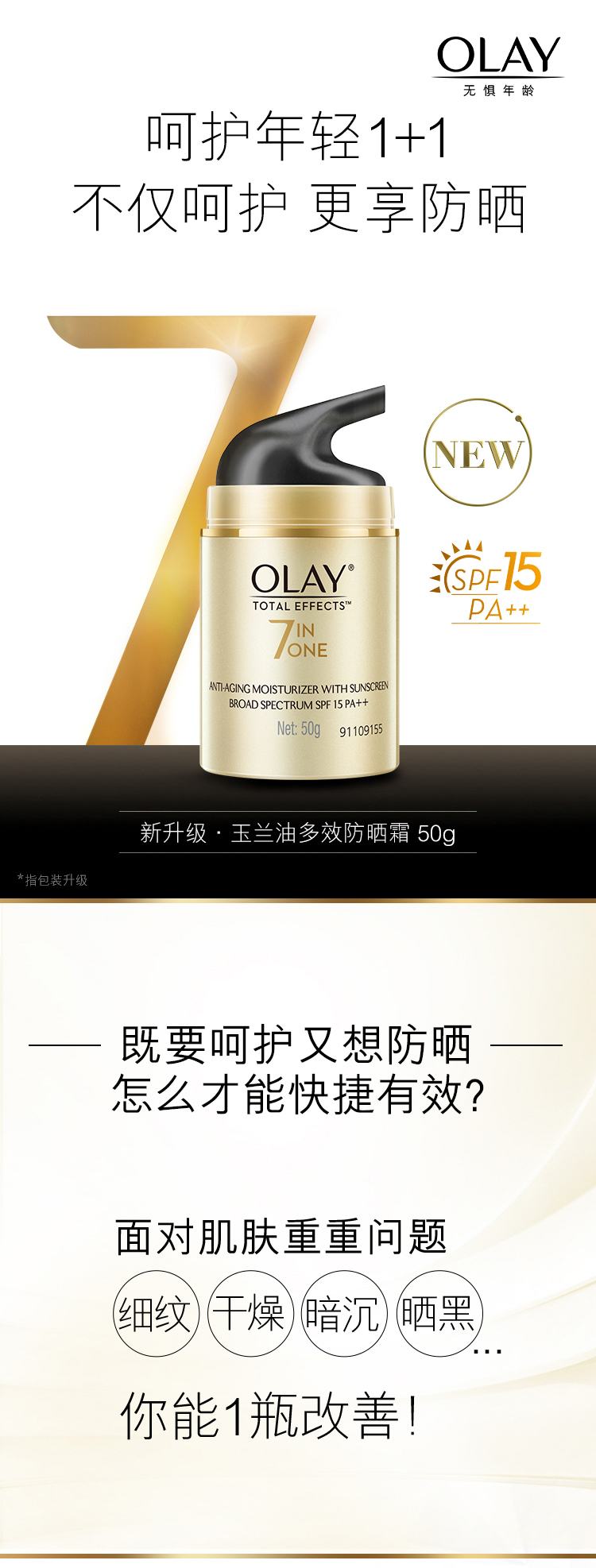 玉兰油(OLAY)多效防晒霜50g女士护肤品隔离提亮肤色细致毛孔保湿滋润修护