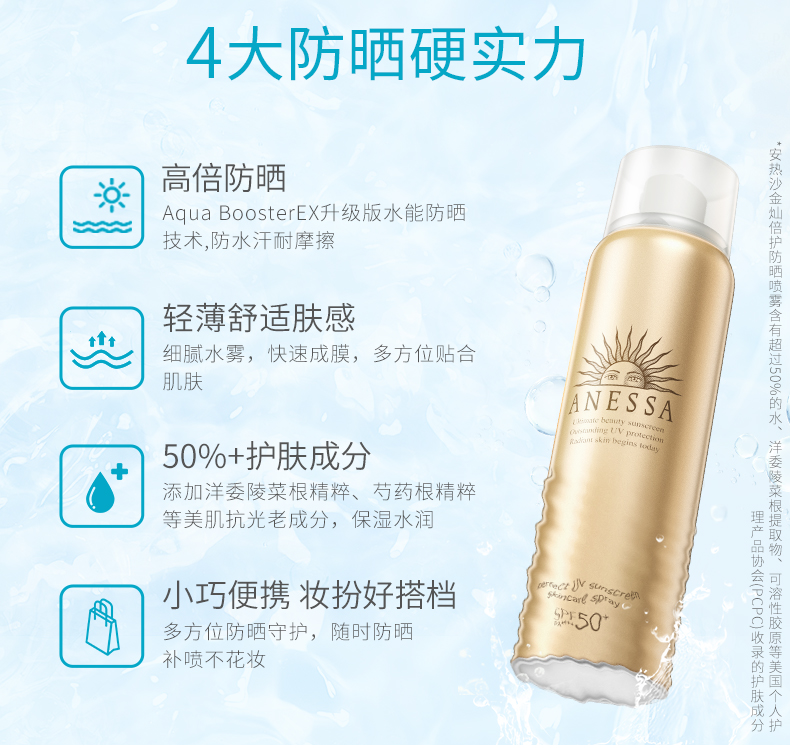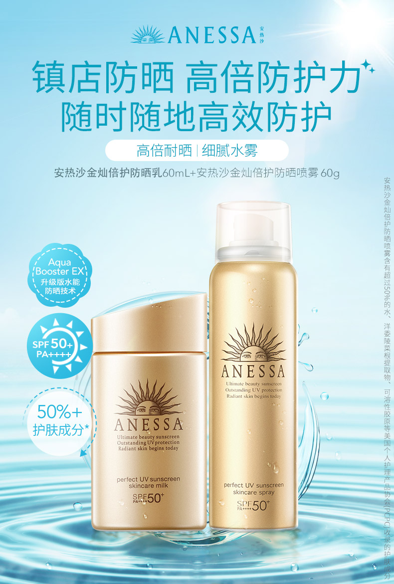 安热沙防晒套装小金瓶60ml+喷雾60g 防水防汗 户外套装