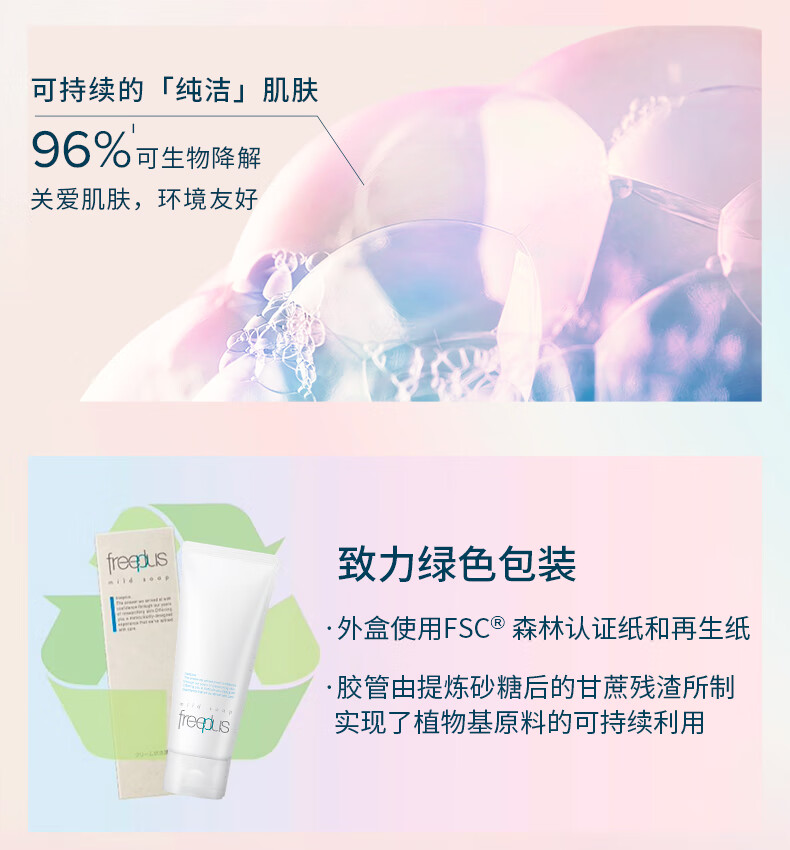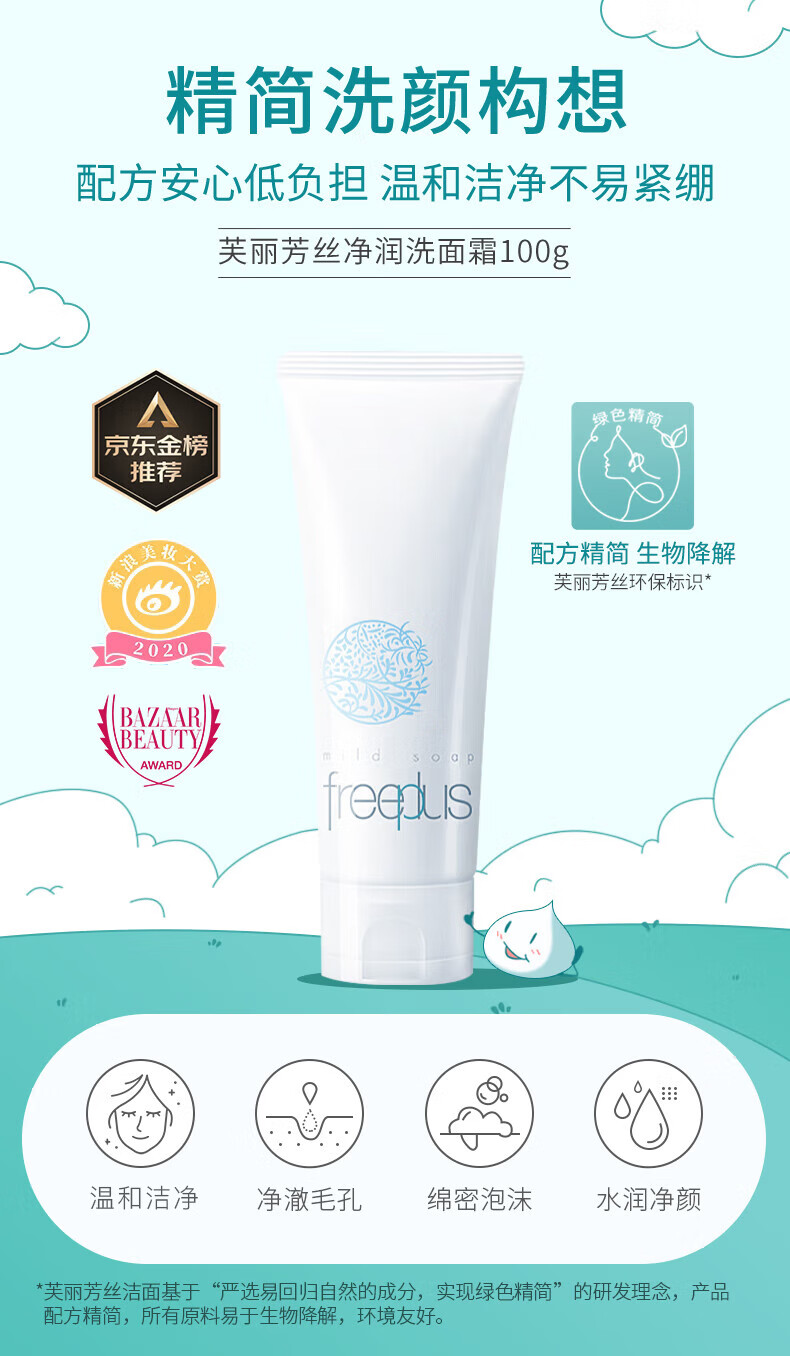 芙丽芳丝洗面奶氨基酸系洁面freeplus男士女士100g/绿色环保成分易降解
