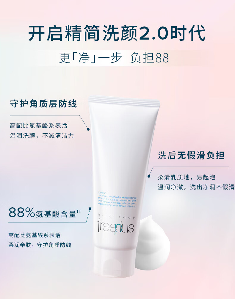 商品名称:芙丽芳丝洗面奶氨基酸系洁面freeplus男士女士100g/绿色环保成分易降解
