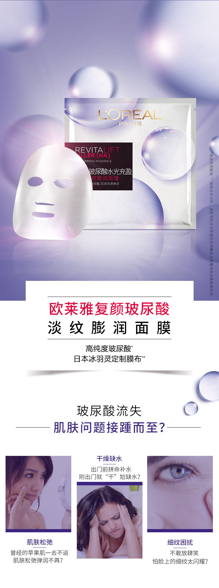 商品名称:欧莱雅复颜玻尿酸淡纹膨润面膜35g*15片补水保湿生日伴手礼物送女友