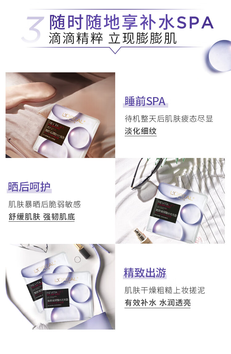 欧莱雅复颜玻尿酸淡纹膨润面膜35g*15片补水保湿生日伴手礼物送女友