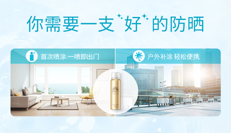 安热沙防晒套装小金瓶60ml+喷雾60g 防水防汗 户外套装